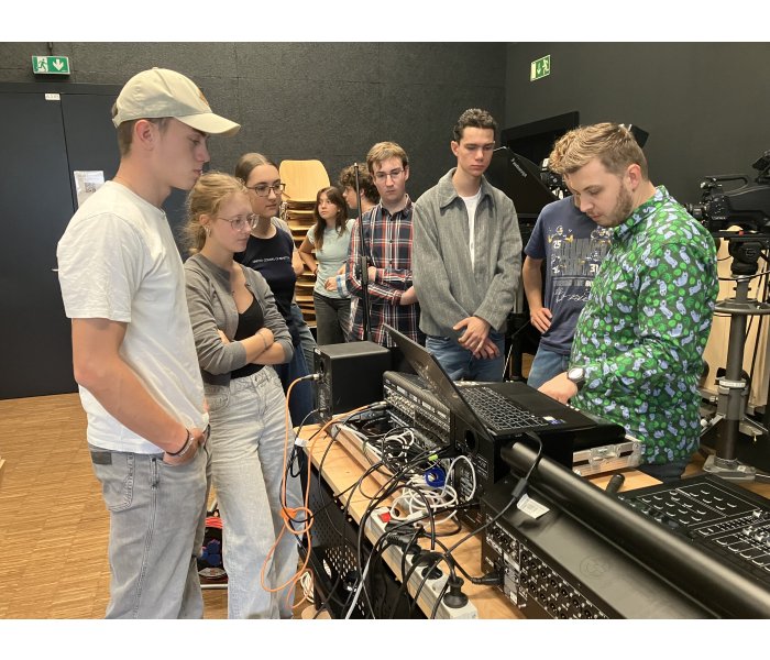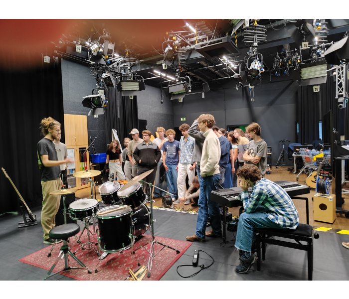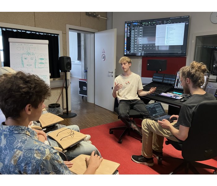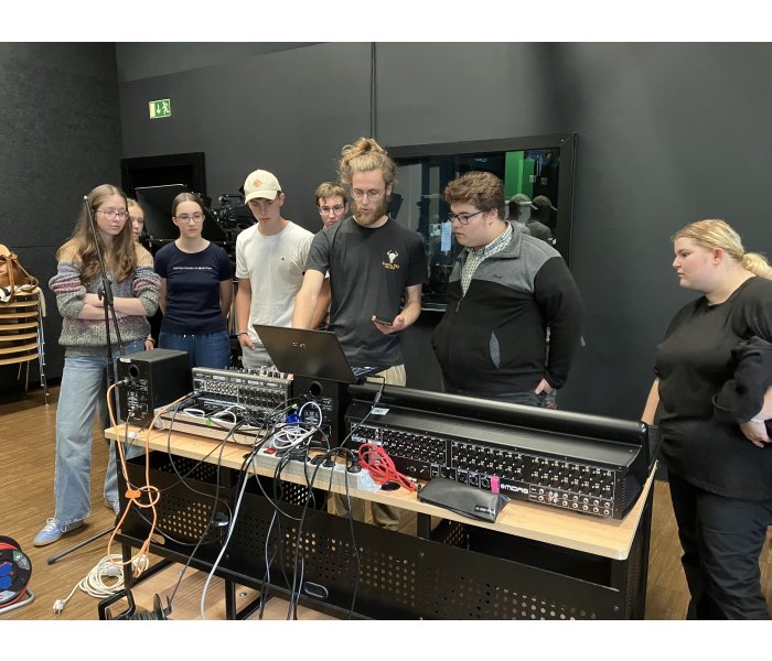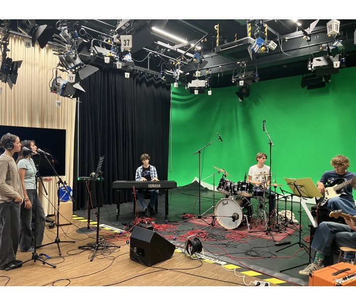 Gemeinsam mit den Musiklehrerinnen Mag. Agnes Frittum und Mag. Klara Boucher machte sich die besonders musische 7D Klasse auf nach St. Pölten, um im Tonstudio der FH St. Pölten einen Song aufzunehmen und dabei Wissenswertes zu Set-Aufbau, Mikrofonierung, Einstellungen am Mischpult und Möglichkeiten für die Nachbearbeitung und Abmischung mit Audiobearbeitungsprogrammen zu erfahren. Die Schülerinnen und Schüler arbeiteten mit viel Engagement und beeindruckten mit ihren Leistungen und ihrem Interesse die Tonmeister. Das Endprodukt – der aufgenommene Song – ist nämlich wirklich sehr gut gelungen!