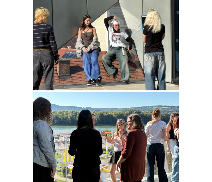 Die Freude, bei schönem Wetter am Dach der Landesgalerie ein Fotoshooting zu erleben war ein