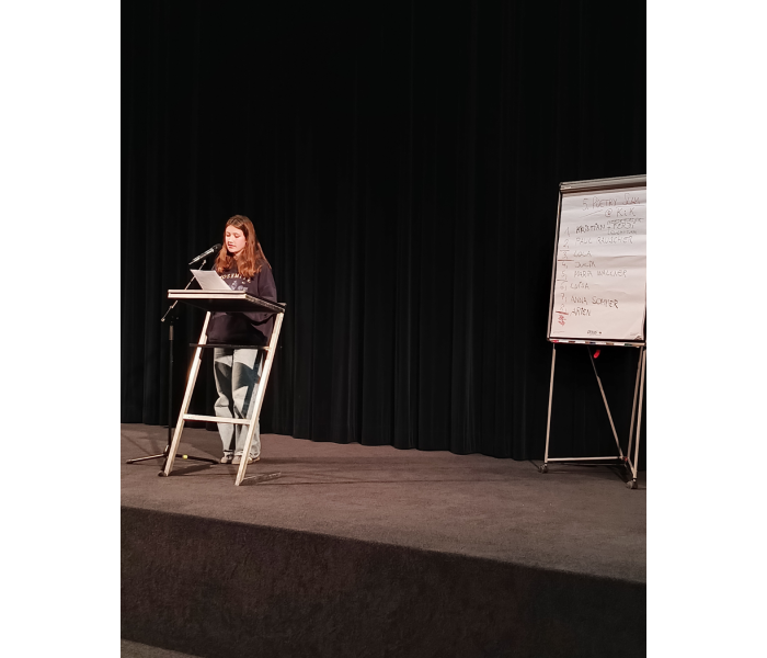 Wenn der Boden zum Beben gebracht wird und der Kinosaal tobt, dann ist es wieder Zeit für den jährlichen Fixtermin: Am 21. Oktober verwandelte sich das Kesselhauskino in Krems erneut in eine Bühne für Worte, Emotionen und originelle Ideen: Beim Poetry Slam zeigten junge Talente, wie kraftvoll Sprache sein kann. Mit dabei waren natürlich auch wieder Schüler:innen des BORG Krems – sowohl im Publikum als auch auf der Bühne.