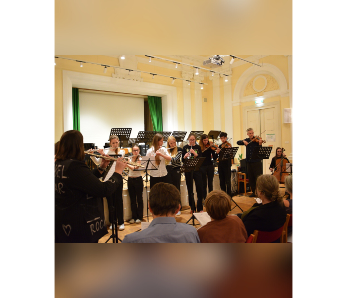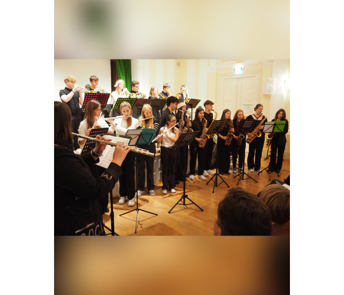 Die Jungmusikerinnen und Jungmusiker beindruckten das Publikum mit ihrem Können auf hohem Niveau und dem bunt gemischten Programm der Solistinnen und Solisten, verschiedensten Ensembles, der Klassenchöre, der Schulband und der Bigband extended. Das Salonorchester motivierte zum Mitsingen, und das Publikum wurde sogar mit einer audio-visuellen Show „verzaubert“: Zum Stück „The Puzzle“, komponiert von Musikschuldirektor Hubert Pöll, gespielt von unserem Schlagwerkensemble, haben Schülerinnen und Schüler des Zweiges Digitale Medien eine dynamische Programmierung gestaltet, die mit verschiedenen Bildern auf die Lautstärke und Tonhöhe der verschiedenen Instrumente reagierte.