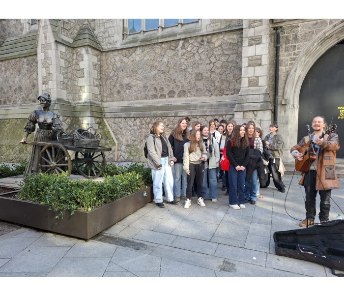 Zu den besonderen Höhepunkten zählte für viele der Irish-Dance-Abend, bei dem gemeinsam Ceili getanzt und traditionelle irische Lieder gesungen wurden. Andere zeigten sich vom Skywalk im Croke Park, einem der größten Sportstadien Europas, beeindruckt. Und ob man – wie die Schülerinnen der 6D – bei der Darbietung eines Straßenmusikers spontan in „Molly Malone“ einstimmte und dafür großen Applaus erntete oder einfach die unverwechselbare Atmosphäre bei einem Spaziergang über die Grafton Street genoss: Die vielfältigen Eindrücke und gemeinsamen Erlebnisse werden uns allen noch lange in Erinnerung bleiben.