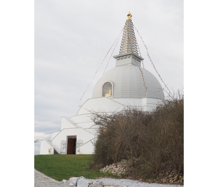 Und dann kam der Überraschungseffekt: Wer sich an zwei weit voneinander entfernte Mauern der Stupa stellt, kann miteinander sprechen, als würde man direkt nebeneinanderstehen. Ein akustisches Phänomen, das für ungläubiges Staunen sorgte. Zum Abschluss wurde die Stupa auch von außen umrundet – ein Weg, der nicht nur spirituell, sondern auch landschaftlich beeindruckt. Die Fernsicht über den Wagram war so klar und weit, dass man fast das Gefühl hatte, selbst ein Stück leichter geworden zu sein. Ein Ausflug, der nicht nur Wissen vermittelt hat, sondern Spuren hinterlässt. Vielleicht sogar ein kleines bisschen Gelassenheit.