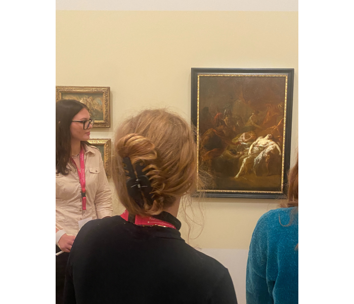 „Wir haben im Zuge unserer Ausbildung schon viele Kunstvermittlungsprogramme kennengelernt, nun können wir vieles davon selbst anwenden“, erklärt eine Schülerin. So reichte das Spektrum der Präsentationen von musikalischen oder zeichnerischen Intros, über dialogische Führungen bis hin zum klassischen Vortrag mit gezielten Fragen an die Zuhörerinnen.