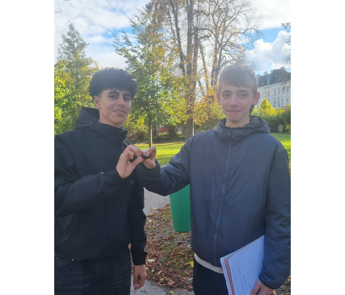 Im naturwissenschaftlichen Laborunterricht hat die 5A heute dem starken Wind getrotzt und die verschiedenen Baumarten im Schulhof und Stadtpark unter die Lupe genommen. Unter anderem konnten Kiefer, Linde, Eibe, Eiche, Blutbuche, Ahorn, Ginko, und auch Blauglockenbaum bestimmt werden. Auch ein paar grüne Triebe wurden entdeckt, was ungewöhnlich ist und mit dem Klimawandel zusammenhängt. Die Beobachtungen in der Natur boten einen interessanten Einstieg in die Herbstferien!