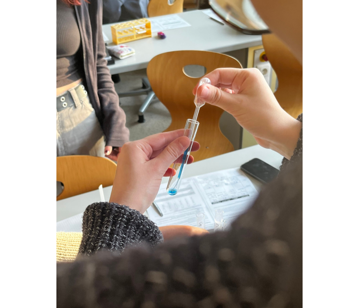 Zucker ist nicht nur süß - er kann sich auch erstaunlich gut verstecken. Am Mittwoch, den 19. November 2025, verwandelte sich das Wahlpflichtfach Biologie der 7. und 8. Klassen in ein kleines Forschungslabor. Unter der Anleitung von Frau Professor Németh gingen die Schülerinnen und Schüler der Frage nach: Welche Lebensmittel enthalten Zucker – und welchen? Dabei wurden zwei unterschiedliche Nachweisverfahren durchgeführt, die zeigen, dass Zucker nicht gleich Zucker ist.