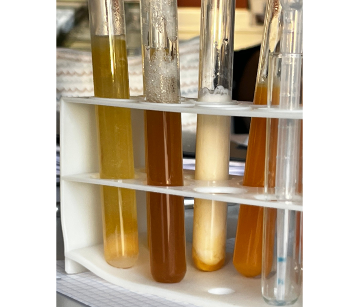 Im zweiten Versuch ging es chemisch heiß her. Mit Fehling I und II wurden die Proben erhitzt. Dieses Verfahren weist reduzierende Zucker nach (z.B. Glucose, Fructose, Lactose). Kippt das Blau zu Orange? Ja? Dann bedeutet das, dass reduzierender Zucker vorhanden ist.