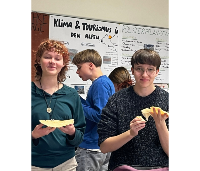 Der letzte Programmpunkt, für den einige sogar freiwillig länger in der Schule blieben, war die süßeste Belohnung: Palatschinken! Diese wurden dann noch fleißig geschmaust. Man könnte sagen, es war ein praktischer Nachweis für die Wirkung von Glucose, Wärme und Geduld, aber diesmal mit Geschmack.