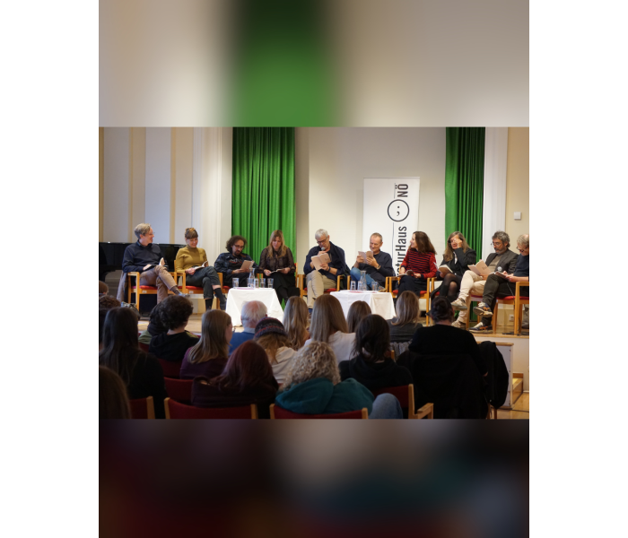 Moderator Christoph W. Bauer führte durch die Lesung, gab eine Einführung und präsentierte die deutschen Übersetzungen. Die spanischen Originaltexte las Abraham Gragera, Writer in Residence im Literaturhaus NÖ. Anschließend stellten die Lyriker und Lyrikerinnen ihre Antwortgedichte vor.