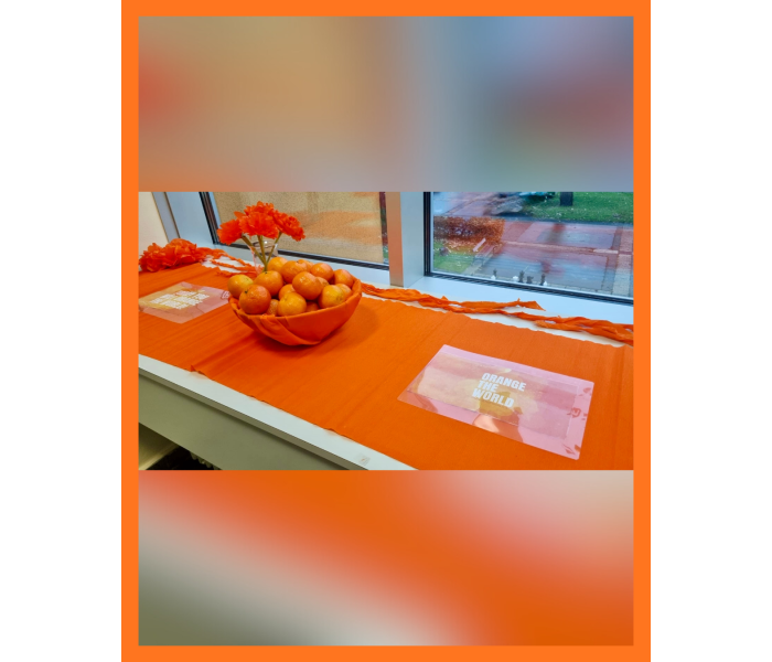 Bereits zum zweiten Mal bekommen unsere Schülerinnen und Schüler im Zeitraum der „Orange the World“-Kampagne statt Äpfeln Clementinen. Diese Aktion wird von unserer Direktorin Mag. Barbara Faltl sowie vom Elternverein unterstützt.
