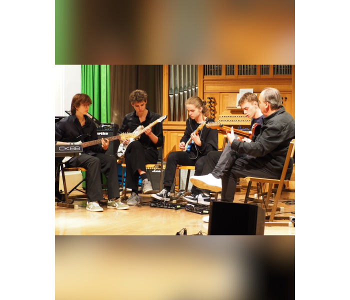 Die Jungmusikerinnen und Jungmusiker beindruckten das Publikum mit ihrem Können auf hohem Niveau und dem bunt gemischten Programm der Solistinnen und Solisten, verschiedensten Ensembles, der Klassenchöre, der Schulband und der Bigband extended. Das Salonorchester motivierte zum Mitsingen, und das Publikum wurde sogar mit einer audio-visuellen Show „verzaubert“: Zum Stück „The Puzzle“, komponiert von Musikschuldirektor Hubert Pöll, gespielt von unserem Schlagwerkensemble, haben Schülerinnen und Schüler des Zweiges Digitale Medien eine dynamische Programmierung gestaltet, die mit verschiedenen Bildern auf die Lautstärke und Tonhöhe der verschiedenen Instrumente reagierte.
