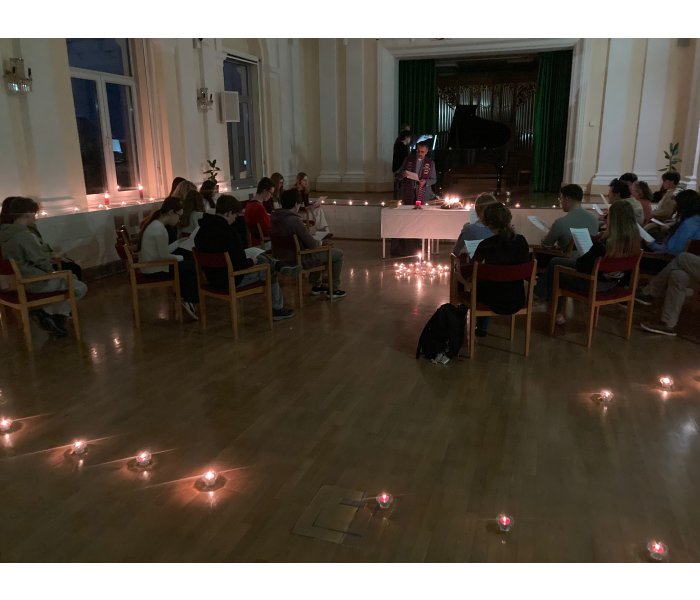 Um die stressige Zeit vor Weihnachten bewusst zu unterbrechen, feierten wir heuer zum ersten Mal eine Rorate-Andacht am BORG Krems. Die Religionsgruppe der 8D hat die Andacht mit großem Engagement geplant und umgesetzt. In den frühen Morgenstunden versammelten sich Schüler:Innen und Lehrer:Innen in stimmungsvoller Atmosphäre, die durch Kerzenlicht und ruhige Musik geprägt war. Die Andacht, unter der liturgischen Leitung von Pater Nikolaus Vidovic, stand ganz im Zeichen der Vorbereitung auf Weihnachten und lud zum Innehalten und Nachdenken ein. Mit ausgewählten Texten, Gebeten und musikalischer Umrandung gestalteten die Schüler:Innen eine besinnliche Feier, die allen Beteiligten einen Moment der Gemeinschaft, der Ruhe und der Vorfreude auf das Weihnachtsfest geboten hat. Abgerundet wurde die Andacht mit einem gemeinsamen Frühstück in vorweihnachtlicher Stimmung.