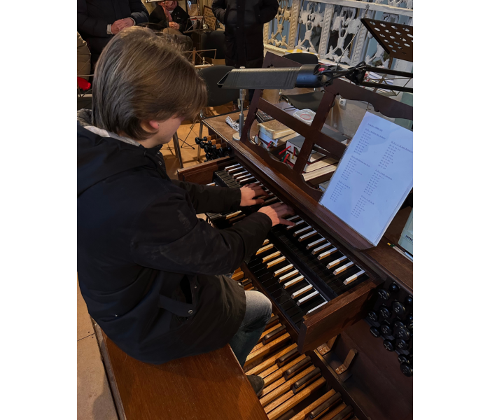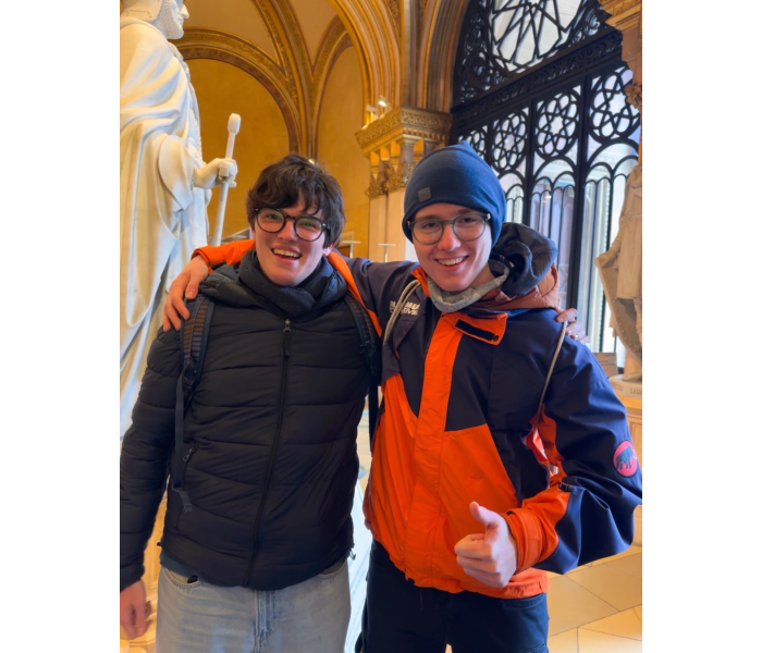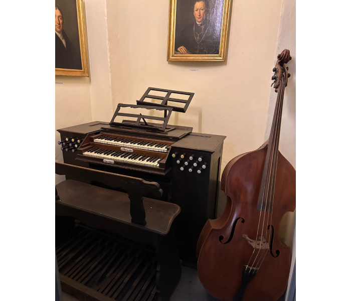 Am Freitag, dem 23. 01. 2026, begaben sich die Klassen 8D und 8A auf eine Exkursion nach Wien. Erste Station war die Pfarrkirche Lichtental nahe beim Franz-Josefs-Bahnhof, welche besser unter dem Namen „Schubertkirche“ bekannt ist. Dank des Entgegenkommens von Herrn Mag. Heidelberger, dem Pastoralassistenten der Pfarre, konnten die Schülerinnen und Schüler auch jene Teile des Gotteshauses besichtigen, die normalerweise Besuchern nicht zugänglich sind. So gelangte die Gruppe auch auf die Empore der Schubertorgel. Diese Bezeichnung bezieht sich übrigens nicht nur auf den berühmten Komponisten Franz Schubert, der nur gelegentlich auf der eben genannten Orgel spielte, sondern auch auf seinen Bruder Ferdinand, welcher jahrelang in der Pfarre Organist war. Eduard Koller (8D) erhielt die Gelegenheit, einige Takte auf dem berühmten Instrument zu spielen. Er gab einen Auszug aus Johann Sebastian Bachs Chromatischer Fantasie in d-Moll zum Besten, wofür er begeisterten Applaus erhielt.