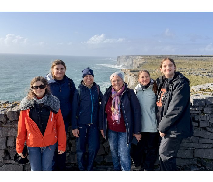 Anfang März unternahmen die 6. Klassen des BORG Krems eine Sprach- und Kulturreise nach Irland. Unsere Gruppe, die 6BD, startete ihren Aufenthalt im charmanten Küstenstädtchen Galway, von wo aus wir einen wunderschönen Tagesausflug auf die Aran Islands unternahmen: eine Radtour auf Inishmore, bei der kurzer Regen von strahlendem Sonnenschein abgelöst wurde, führte uns zu Dún Aonghasa, einem Fort aus der Bronzezeit, an deren Rand die Klippen steil ins darunter brausende Meer abfallen. Landschaftlich ebenso beeindruckend erlebten wir die Cliffs of Moher, bevor uns unsere Reise zurück an die Ostküste und Dublin führte.