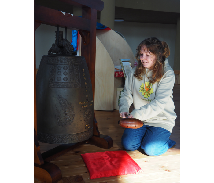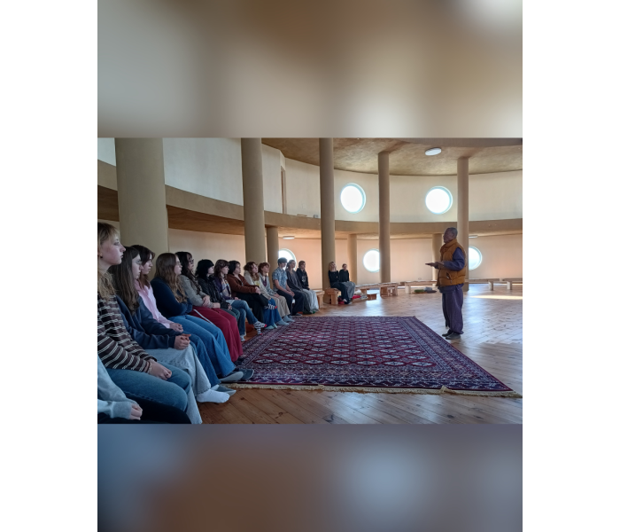 Schon beim Betreten der Stupa wurde klar: Das ist kein gewöhnlicher Klassenzimmer-Nachmittag. Ein buddhistischer Mönch führte die Schüler:innen durch das beeindruckende Bauwerk, erzählte von Symbolen, Ritualen und Lebensphilosophien – und schaffte es, selbst komplexe Gedanken mit einer Ruhe zu vermitteln, die sofort ansteckend wirkte. Ein besonderes Highlight war die gemeinsame Meditation mit Mönch Sunim.