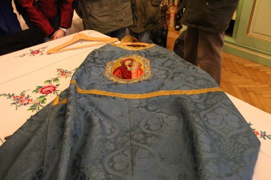 Außerdem hatten wir Zutritt zum Altarraum, welcher in orthodoxen Kirchenbauten für gewöhnlich durch eine Ikonostase vom Gemeinderaum getrennt ist, und zur Sakristei, in welcher liturgische Gewänder und Geräte aufbewahrt werden. Dabei hatte ich die Ehre, eine Hochzeitskrone tragen zu dürfen, was zu einem heiteren Abschluss der Exkursion führte.