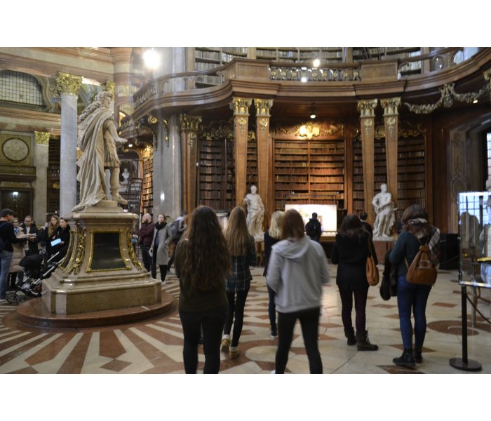 Die Wahlpflichtfach-Gruppe Geschichte des BORG Krems machte sich am Mittwoch, dem 19. April, unter der Leitung von Mag. Ernst Kudielka auf den Weg nach Wien. Ziel war der Prunksaal der Österreichischen Nationalbibliothek, der mit öffentlichen Verkehrsmitteln erreicht wurde.